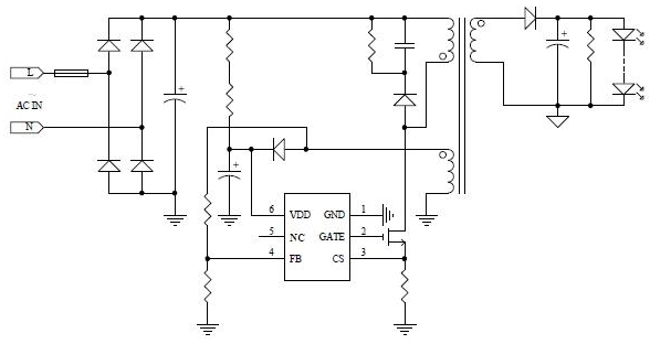 PL3322C 同時具有多種保護功能:逐周期峰值電流檢測、欠壓保護、過壓保護等。